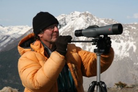 From 1992 to 2007, Peter was the primary driver of the Rocky Mountain Eagle Research Foundation’s (RMERF) spring and fall raptor counts at his ‘office’ in Hay Meadows at the Mount Lorette observation site in Kananaskis. The counts were conducted from September to November and from February to April, usually from sun-up to sun-down. Although in many of those early days he observed alone, slowly he was joined by a stalwart cast of other dedicated observers.  Always looking to add to the understanding of the migration patterns, he moved his observation site to Plateau Mountain for a short and windy time. In 2007, Peter and his late wife Barbara relocated to Beaver Mines in southern Alberta where he set up an observation site on the south end of the Livingston Range at a spot he dubbed Piitaistakis or “Place of Eagles”.
